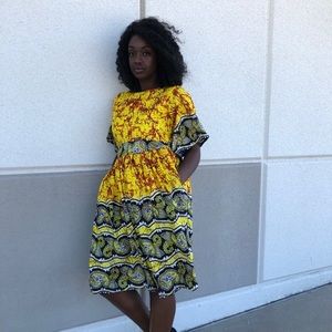 African women dress Ankara handmade knee length butterfly sleeve dress with side pockets and black belt