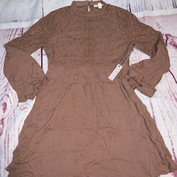 💜 Boho taupe lace dress bell sleeve