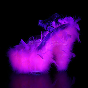 7" High Heel, 2 3/4" Platform Ankle Strap Sandal Shoes. Marabou Feather Covering the Entire Platform Bottom.