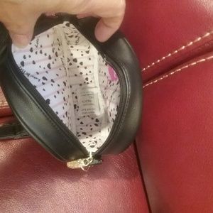 Luv Betsey Johnson Flamingo Crossbody /Shoulder Bag Canteen Purse - Fuchsia. The back is plain black, zips closed , 7" diameter, 2.5" deep.