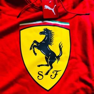 NWT - Brand New with tags Puma x Ferrari Collab Red Hoodie. Large Emblem on front of hoodie. Men’s size Large and X-Large available.