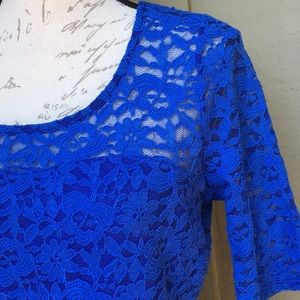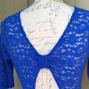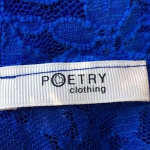 Beautiful blue lace top with lined bust and cut out back by Poetry.