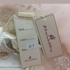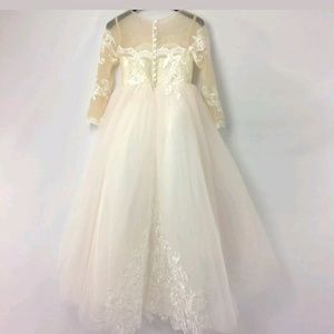 Abao Wedding F15 Girls Dress Lace Tulle Illusion Neckline Long Sleeve Off White Ivory Light Pink Little Bride Size 6/7 New Christening Holy communion Wedding Little Bride F14