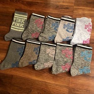 Bundle of 10 pairs of Victoria's Secret VS PINK crew assorted socks all pictured - all brand new never worn, no tags