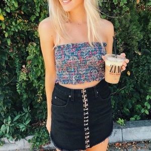 LF Carmar Black Hook Eye Denim Skirt