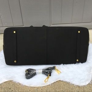 Joy’s Christie collection is luxury at its finest. This deep black weekender is sleekly crafted from Saffiano leather accented in gold-tone hardware with an unparalleled organized interior.
