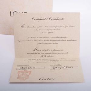 Features 6 Love symbols, 18k (750) white gold, has Cartier hallmarks on interior of ring.