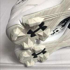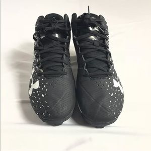 This pair of Under Armour men's size 11.5 Lead off Mid RM Football Cleats is in excellent pre-owned condition and ready to wear with no flaws. These shoes are just in time for football season. Art # 1278742-011. Please, message any questions. See photos.