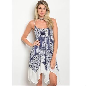 🆕⭐️ Navy Blue Boho Print Asymmetrical Dress