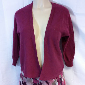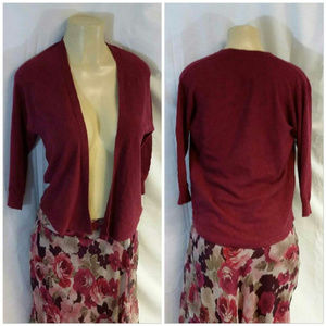 AMERICAN EAGLE OUTFITTERS, Burgundy Slub Open Hi-Lo Shrug, size Small, 3/4 sleeves, light-weight slub material, 2 1/4" knit sleeve hem, machine washable, 100% cotton, 22" length front shoulder to hem, 24 1/2" length back shoulder to hem. SAVE BIG! AUTOMATIC 30% BUNDLE DISCOUNT! ADD TO A BUNDLE!