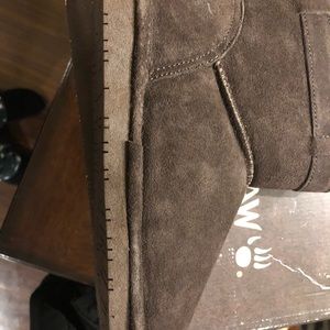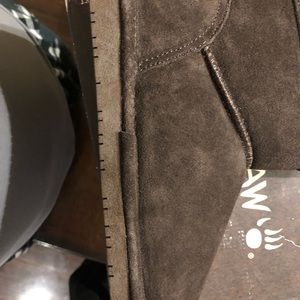 NIB chocolate bear paw boots! I have size 6 and 8 left. They are new in box but when they were shipped to me the size 8 have a couple rub spots. It’s not terrible but I am reducing the price of this pair to reflect that. They are otherwise perfect. I will be listing the 6’s in a separate listing. They measure 8in in height. Sheepskin with a wool lining. No 1/2 sizes in this brand best to size up. I typically wear my with a thick sock and it’s perfect 😊