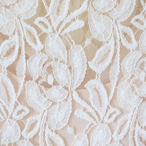 Comes in two pieces, the sheer lace overlay and a peach/nude colored spaghetti strap slip.