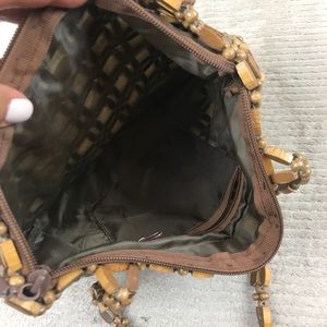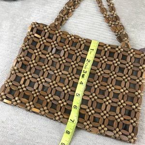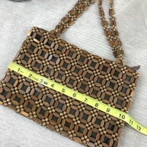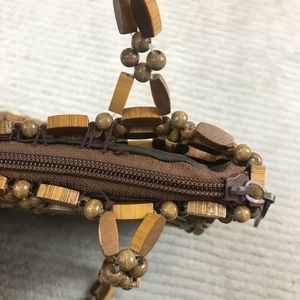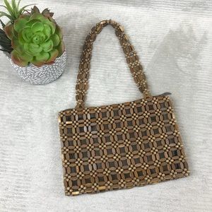Vintage Wooden Bead Purse Handbag - lined, zipper