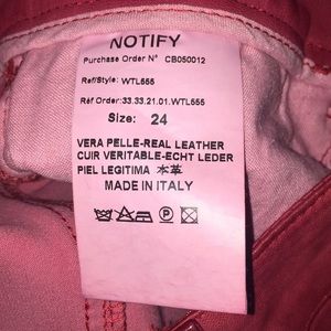 Genuine lamb leather moto style skinny pants with zipper ankles by Notify label. Made in Italy.
