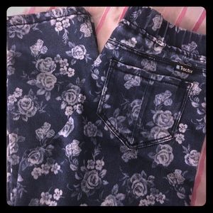 Sz8 Girls Blue/White floral cotton/Polyester/Spandex. EUC pull up with faux front pockets. Pic 1 portrays the color best.