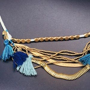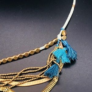 Very unique leather and metal mix necklace with tassel accents. Leather is a beautiful mint color. Necklace is in excellent condition - no stains or damage. Worn only a handful of times.