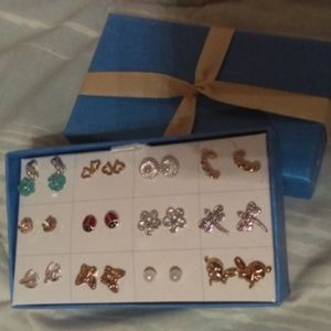 Great 12 piece assortment of post style pierced earrings.Outer box is a little tattered. Gift box is in good condition.