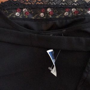 Monteou Women’s blouse size XL color black short sleeves made in Vietnam 100% polyester length 22.5 in. Chest 20in. J-40