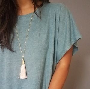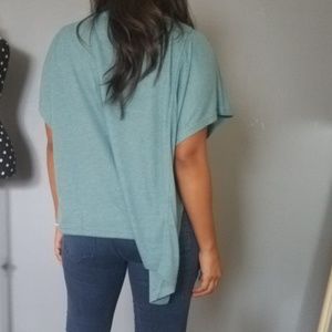 I'am in love with the color of this top! It's like a bluish green❤ Asymmetrical hemline. Sleeves drape beautifully over shoulders. Simply gorgeous!