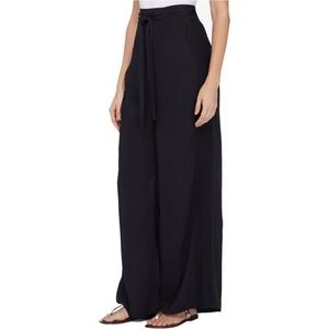 BLACK EYELET TRIM WIDE LEG PALAZZO PANTS