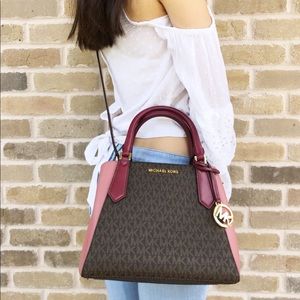 Gaby’sBags👜💕-Michael Kors Satchel Brown Mk Pink