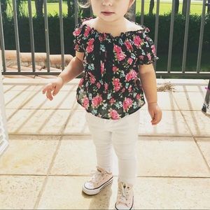 5/$20 NANETTE 2 PC FLORAL TOP WHITE PANTS 12 month