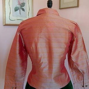 Beautifully tailored silk shantung blouse by Ann Taylor. Button front with three quarter sleeves. Rich peachy orange stripe.