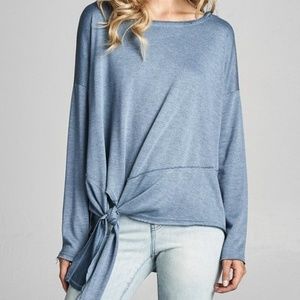 Oversized Drop Sleeve Side Tie Top Blue