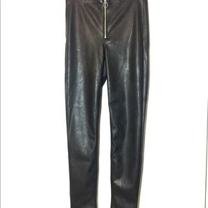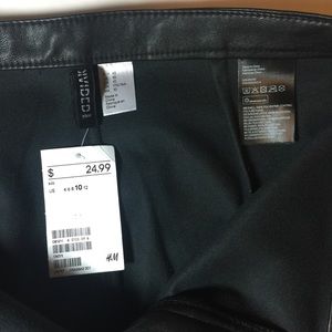 Brand new never worn, stylish faux leather skinny pant by H&M's Divided. Sleek and SLIM. Exposed front zipper with circle ring zipper pull. Size 10, APPROXIMATE measurements laying flat: