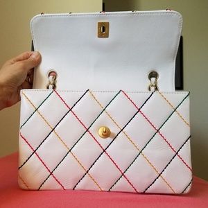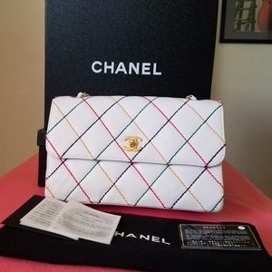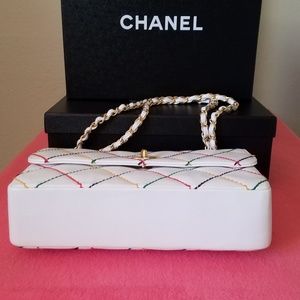 Chanel White Leather Classic Flap medium bag