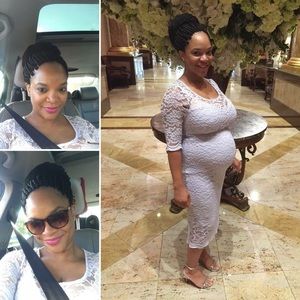 Lace maternity dress.