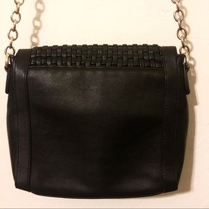 Vegan leather and gold chain shoulder strap.