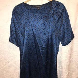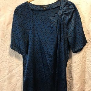 Banana Republic Blue Silk Blk Pattern Blouse Medium