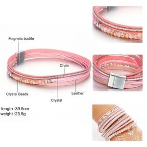 Handmade Artisian braided and crystal beaded leather bracelet Magnetic Closure