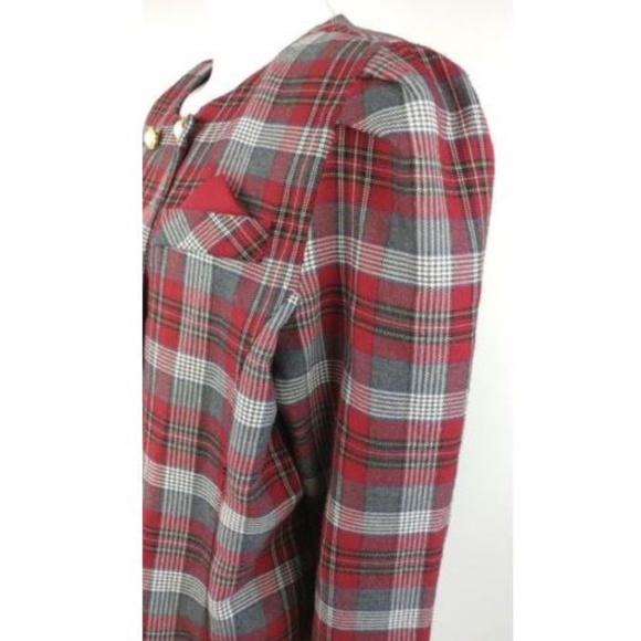 Vintage 80s Plaid Power Suit Blazer Red Gray M L