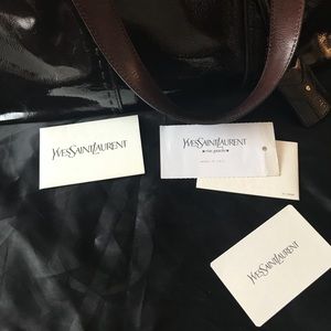 YSL YVES SAINT LAURENT Patent Leather Muse Bag $1690... The first iconic "It" bag from the YSL house. Rounded bowler shape large "Muse" bag in glossy, grained black eggplant patent leather. Looks almost new. 😍 inclusion: