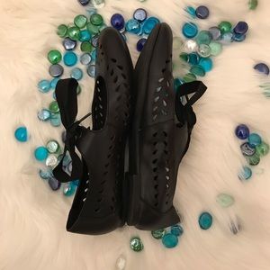 Super cute and comfortable flats! These flats feature a ribbon tie closure and a floral cut-out design. These flats are in excellent condition- no signs of wear.