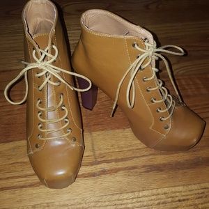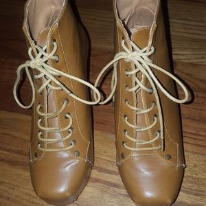 Lace up light brown booties.