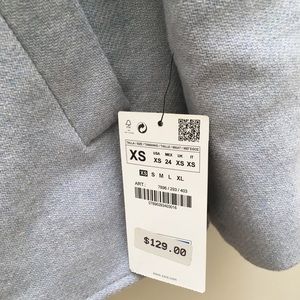 NWT zip-up, hooded, light blue, Zara jacket, size XS. The jacket zips up & also has hidden snap closures at top & bottom of zipped area and 2 hip pockets. Very nice, heavy material perfect for chilly Fall days & the Winter months as well. Very nice jacket!