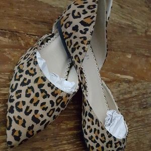 Chic flats; very versatile -matches many looks and outfits. Man made materials. Available in sizes 8.5, 9, 10