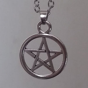 Beautiful Tibetan Silver Pentagram necklace on a 50cm chain. This item is brand new and would make a perfect gift for any wiccan or those in love with the occult.