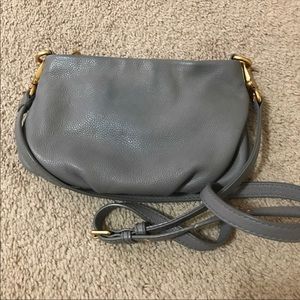 This versatile pebbled leather bog features gold hardware and a go-anywhere attitude. - Detachable, adjustable shoulder strap - Zip top closure - Exterior features brand logo hardware detail - Approx. 5.5" H x 9.5" W x 2" D - Approx. 21-25" shoulder strap drop - Imported
