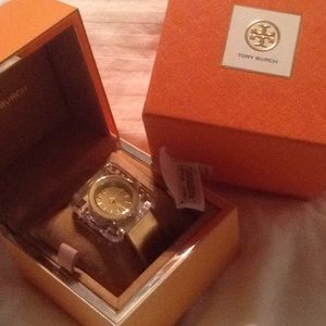 NWT modern, Tory Burch watch, gold leather band, lots of beautiful details.