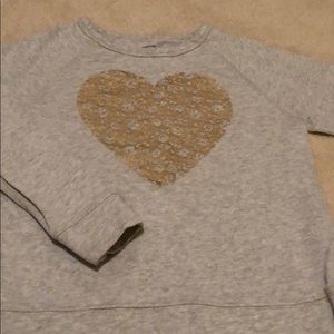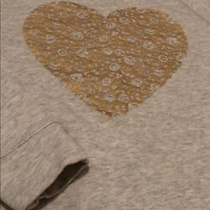 A warm, heathered grey sweatshirt with a warm fleece lining (not thick).