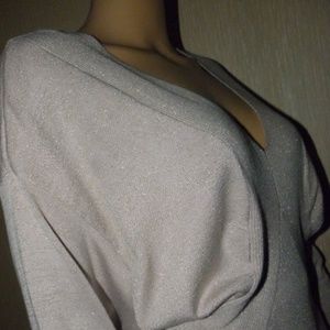 The Sweater has 3/4 length Dolman Sleeves and a deep V-Neck