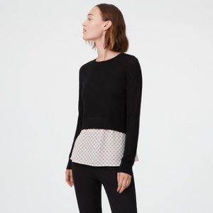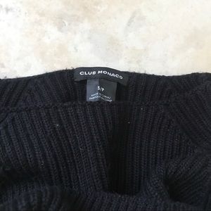 Beautiful high quality ribbed wool sweater in dark navy. Classic neckline and fitted long sleeves make this sweater a must have for cold weathers. Easy to pair with dress, skirts, and jeans. Basically brand new, only wore once or twice, no sign of wear.