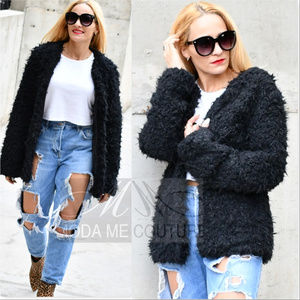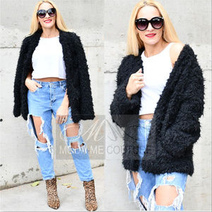Grab this fabulously timeless black faux fur coat for your fall winter wardrobe. So chic and classy! Long sleeved-pockets-fully lined.