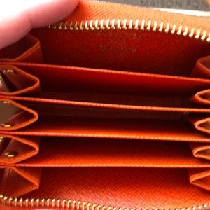 Like new. Authentic Louis Vuitton Zippy Multicartes in piment (orange) Canvas is clean and.bright and hardware is shiny and bright. This was only carried a short time in my purse with a few cards in it. Corner show no wear. Comes with everything pictured. This is a hard to find piece so my price is firm.