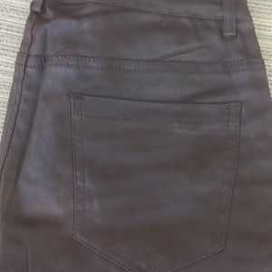 BROWN ELASTIC COATED FAUX LEATHER PANTS
