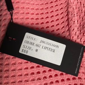 Never worn NWT pink sz M midi dress. Brand the Line from The Outnet.com. Solid underlay to fishnet material with zipper up the back. 30.5” pit to hem, 15” pit to pit.